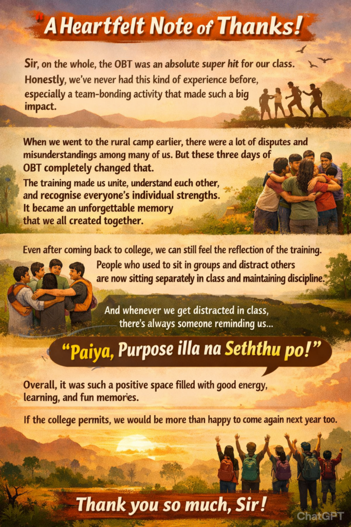 In Chennai, MOUNT OLIVE OBT offers a serene, pollution-free setting with mountain views. Enjoy homely food, expert training and guaranteed participant engagement with actionable insights and lasting behavior change.